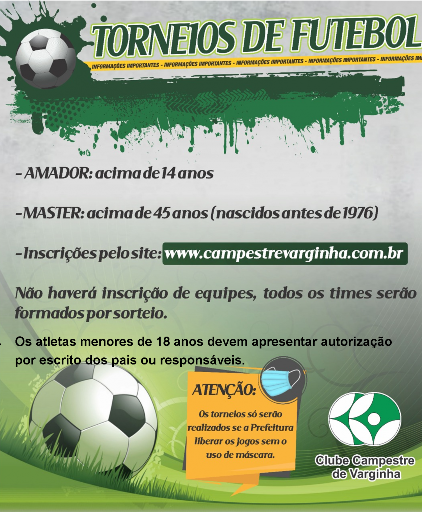 Inscrições para os campeonatos de futebol Amador e Master