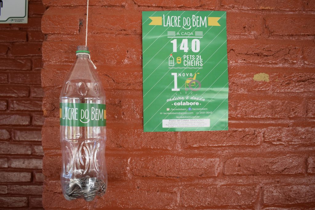 Para conseguir uma cadeira de rodas, é preciso juntar 385 mil lacres de latinhas, ou 140 garrafas de dois litros cheias de lacres, o que equivale a 105 quilos de metal. Não é tarefa fácil, mas se cada pessoa doar os lacres das cervejas e regrigerantes que consome, logo é possível chegar à quantidade necessária.