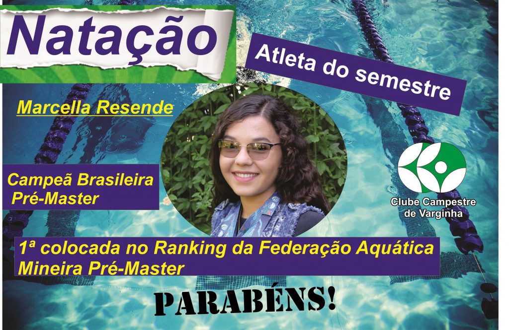 O destaque deste semestre da equipe de natação master do Clube Campestre é a atleta Marcella Froeseler de Lara Resende. Ela se destacou no Semestre por ter se sagrada Campeã Brasileira na categoria Pré-Master e por estar ocupando em 2019 a primeira colocação do ranking da sua categoria na Federação Aquática Mineira.