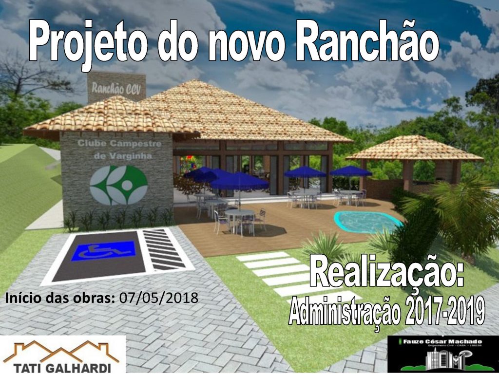 Projetos em andamento Projeto da nova academia Início das obras: 02/05/2018 Projeto do novo Ranchão Início das obras: 07/05/2018