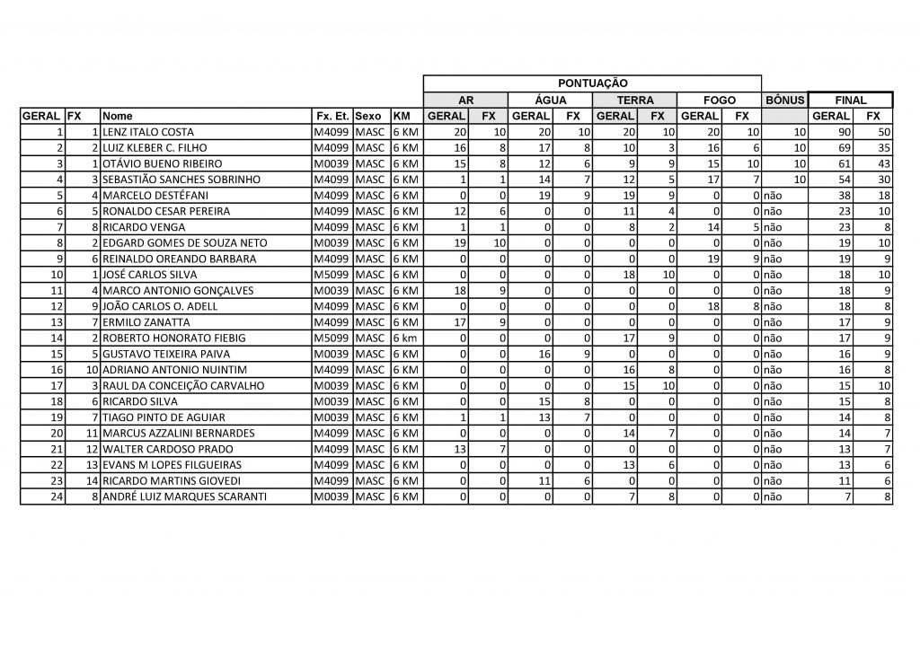 Resultado geral 6km masculino