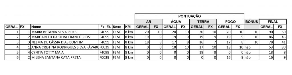 Resultado geral 8km feminino