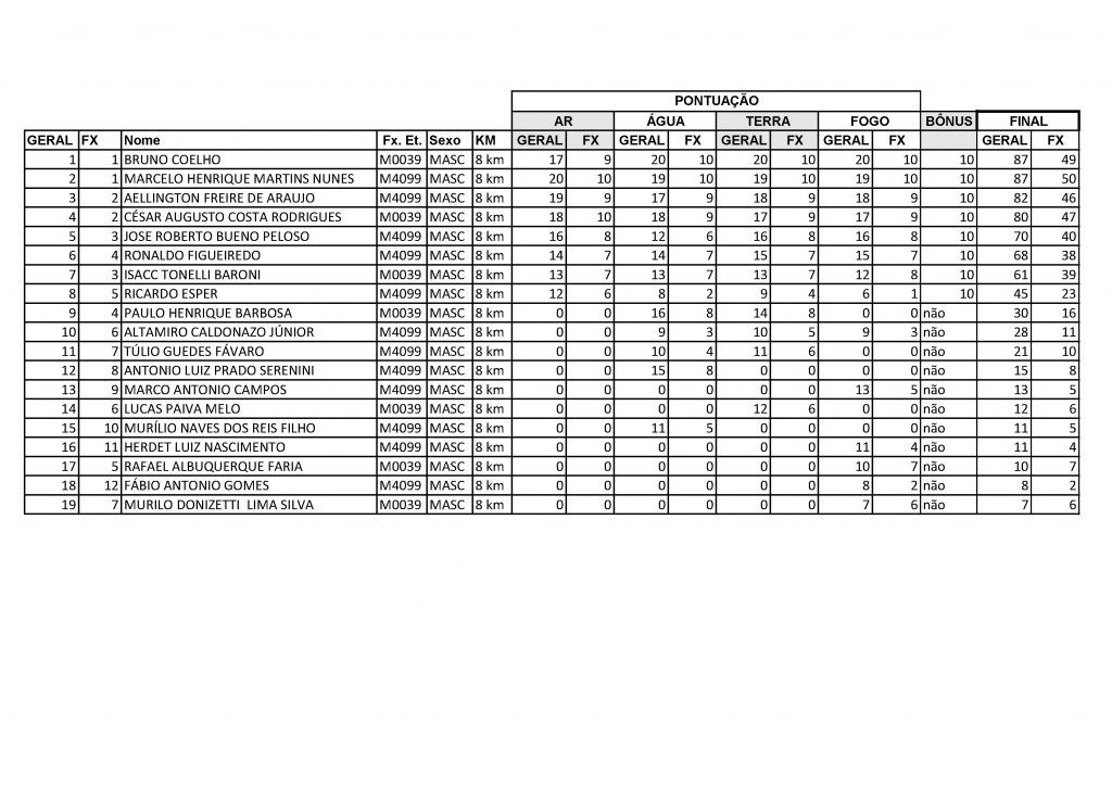 Resultado geral 8km masculino