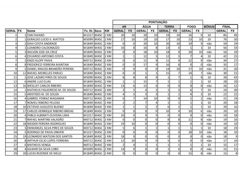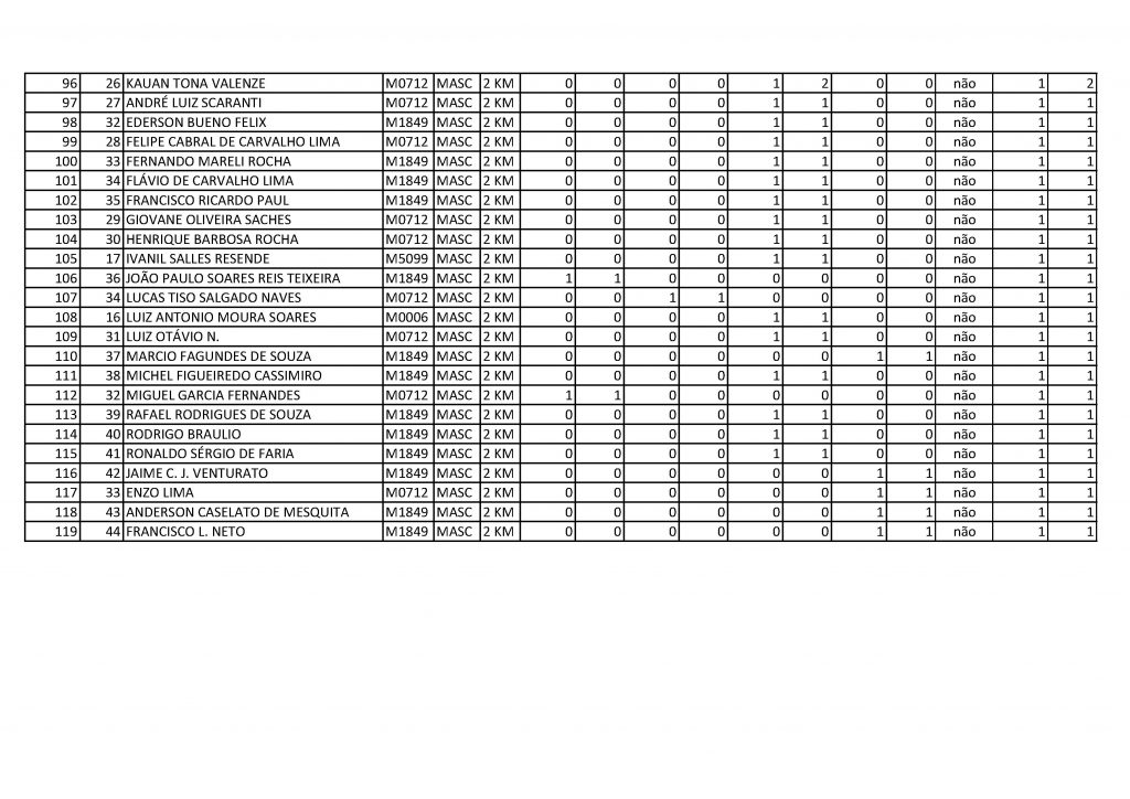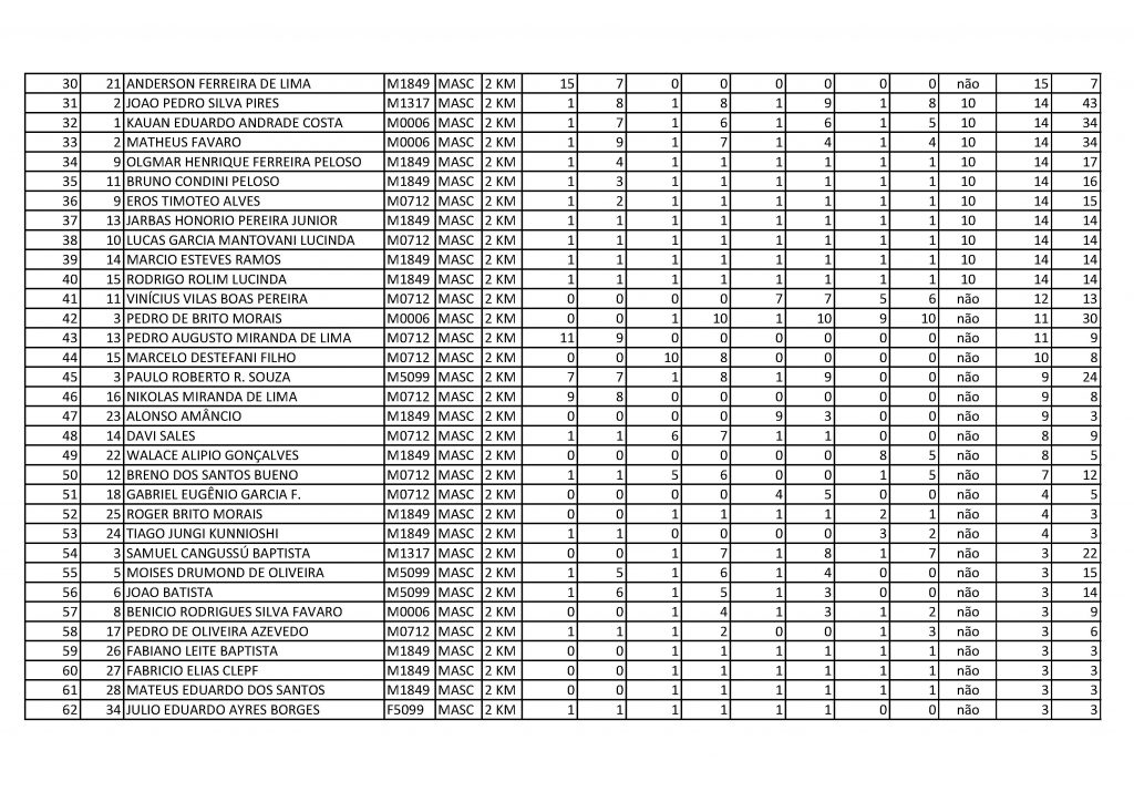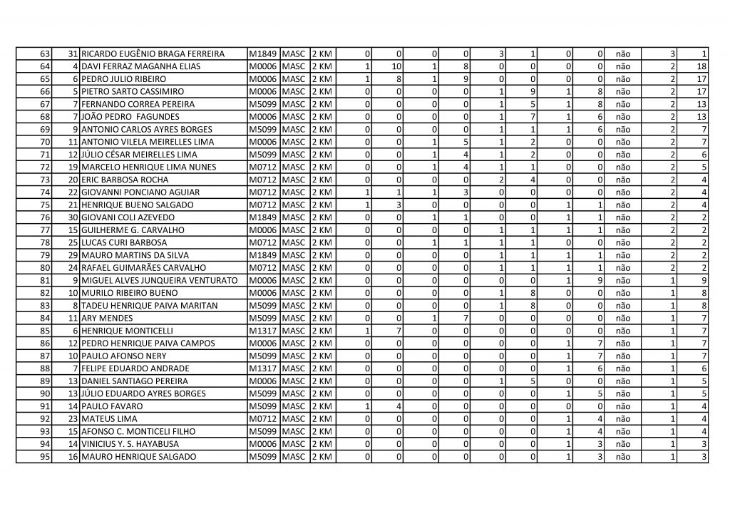 Resultado geral 2km masculino